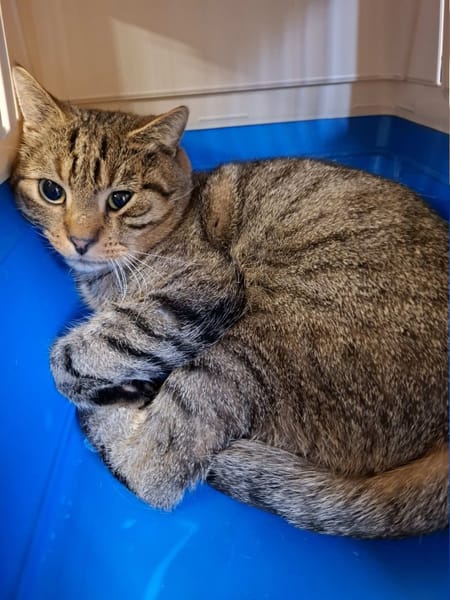 Tigre jest koteczkiem jeszcze lekko nieśmiałym, niechętnie eksploruje miejsce, w którym się znalazł. Woli chować swoje futerko i otulić się kocykiem. Do człowieka jest jeszcze czujny, ale każdego dnia staramy się pracować nad zdobyciem jego zaufania.