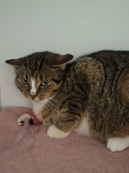 Poezja jest kotką wrażliwą, cichą i bardzo delikatną. Świat trochę ją onieśmiela, a najbardziej stresują ją zabiegi weterynaryjne… a niestety właśnie teraz musi przebywać w szpitaliku. To dla niej trudny czas.
