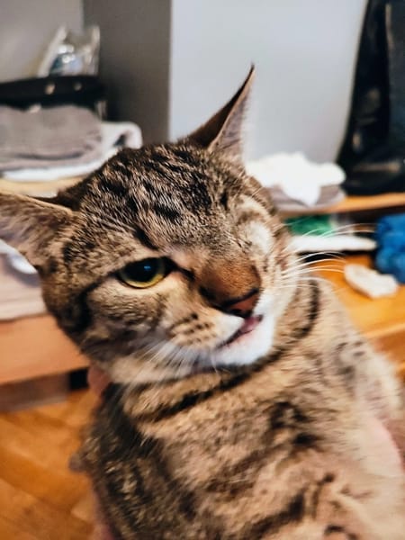 Hejka, jestem Mel Piratka. Czemu Piratka? To chyba oczywiste - nie mam oka, w moim odczuciu to tylko dodaje mi uroku. Czy mi to w czymś przeszkadza? Zupełnie nie. Zachowuję się jak normalny kot - lubię zabawę, wszędzie mnie pełno i wszystko mnie interesuje. Szukam domu przygotowanego na tak wspaniałą osobowość jak moja. Najlepiej w okolicy Pabianic, bo tu mieszkam tymczasowo.