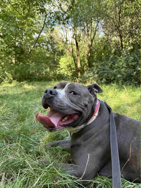 Ozzy to typowy przedstawiciel TTB - silny, umięśniony i pełen energii. Jest przepięknym psem, który swoim wyglądem zachwyca wiele osób. Widzimy że schronisko bardzo mu nie służy i chłopakowi ciężko odnaleźć się w tej rzeczywistości. Choć z Ozzim nie znamy się bardzo długo to widzimy że przez ten krótki czas udało mu się zrobić spore postępy i widzimy jak ogromny potencjał w nim drzemie. Ozzy całe spacery potrafił ciągnąć przed siebie nie zauważając że ktoś znajduje się na drugim końcu smyczy. Teraz gdy już trochę się poznaliśmy i wprowadziliśmy pewną rutynę wspólne spacery zaczynają wyglądać coraz lepiej. Gdy już emocje trochę opadną i oddalimy się od schroniska Ozzy potrafi zwolnić i iść na luźnej smyczy. Pracujemy też nad spokojnym mijaniem psów i na tym polu chłopak robi postępy ale przed nim jeszcze trochę pracy. Udało nam się też wprowadzić kaganiec i teraz Ozzy spokojne daje go sobie założyć i być w nim przez cały spacer. Odkryliśmy też że woda jest jego żywiołem i nie odpuści kąpieli w mijanym baseniku czy kałuży gdy tylko jest taka możliwość. Mimo tych dużych postępów Ozzy dalej potrafi pociągnąć na smyczy a że jest dużym i bardzo silnym psem utrzymanie go wymaga nie małej wprawy.