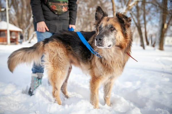 W spojrzeniu Cywila jest bezbrzeżne zdziwienie. Jakby pytał – jak to się stało, że się tu znalazłem? Tego niestety do końca nie wiemy. Być może to historia jakich wiele – pies kupiony pokątnie w jakimś internetowym serwisie, za psi (nomen omen) pieniądz, wiódł pieskie życie na jakimś podwórku albo jako stróż firmowy. A potem nagle się zestarzał, łapki przestały działać jak trzeba, pojawiły się choroby. Na co komu chorujący stróż? I tak Cywil trafił do schroniska. Tu okazał się być psem spragnionym ciepła, kochającym ludzi i tęskniącym za bliskością. Cywil jest też chętny na spacery, ale ze względu na niedawną operację łapy nie powinien chodzić daleko. Wygląda na to, że operacja się udała, a on dochodzi do siebie w dobrym tempie.