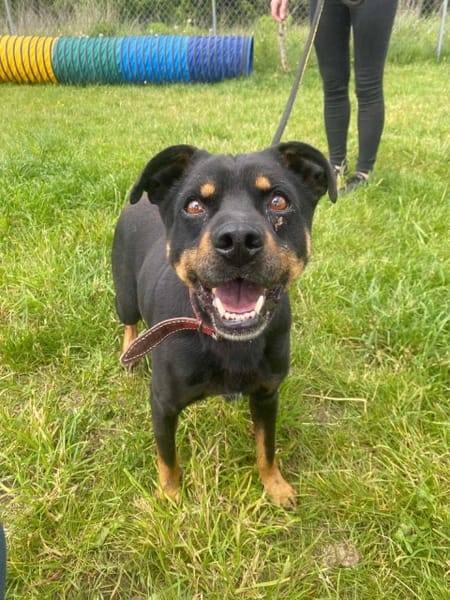 Cześć! Mam na imię Mundek i jestem psem w typie mini rottweilera, chociaż z tej rasy mam tylko wygląd – serce mam dużo bardziej przyjazne i wesołe! Jestem pełen energii, uwielbiam zabawy, spacery i czułość, a w zamian potrafię dać mnóstwo miłości. Jestem wykastrowany, zdrowy i gotowy na adopcję. Potrzebuję osoby, która da mi ciepły dom, trochę cierpliwości, ale przede wszystkim mnóstwo uwagi i miłości. Kocham ludzi, jestem bardzo towarzyski i z chęcią będę Twoim wiernym towarzyszem. Jeśli szukasz energicznego, uroczego psiaka, który wprowadzi do Twojego życia radość i uśmiech, to ja jestem tym, którego szukasz! Będę czekał na Ciebie, gotów do wspólnego życia pełnego przygód. Jeśli chcesz poznać mnie bliżej, skontaktuj się!