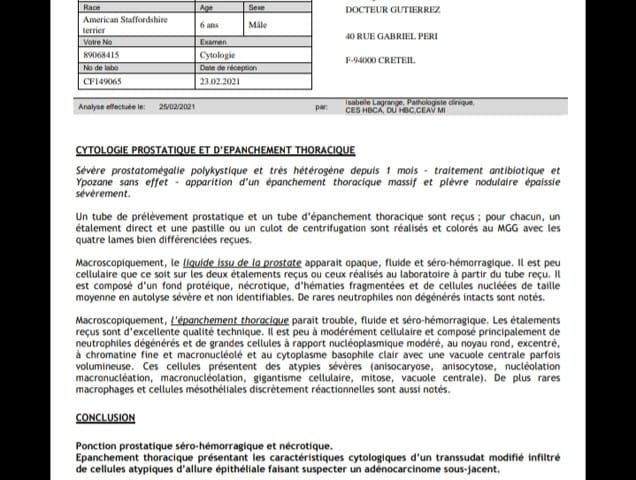 Następnego ranka (sobota) nadal bez zmian, a nawet wydawał się w gorszej formie niż dzień wcześniej, więc udałam się do naszego stałego weterynarza na kontrolę. Zachowanie mojego psa zaniepokoiło panią doktor, więc skierowała mnie do innej kliniki na dodatkowe badania (badanie krwi, USG…) i hospitalizację.